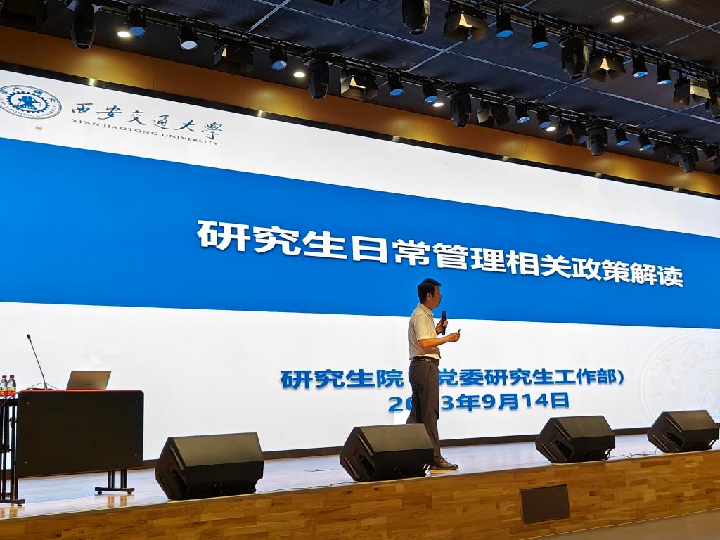 本次新生养成系列活动以《研究生日常管理相关政策解读》为收尾。研工部副部长邢鹏为同学们解读了学校研究生管理的相关政策,从学籍管理、研究生培养、学生住宿等多个层面对研究生在校园生活中遇到的常见问题进行梳理与解答。他鼓励广大同学坚定理想信念,树立底线意识,在实践中锤炼自我,在锤炼中勇担重任,以青春之我,创青春之国家。